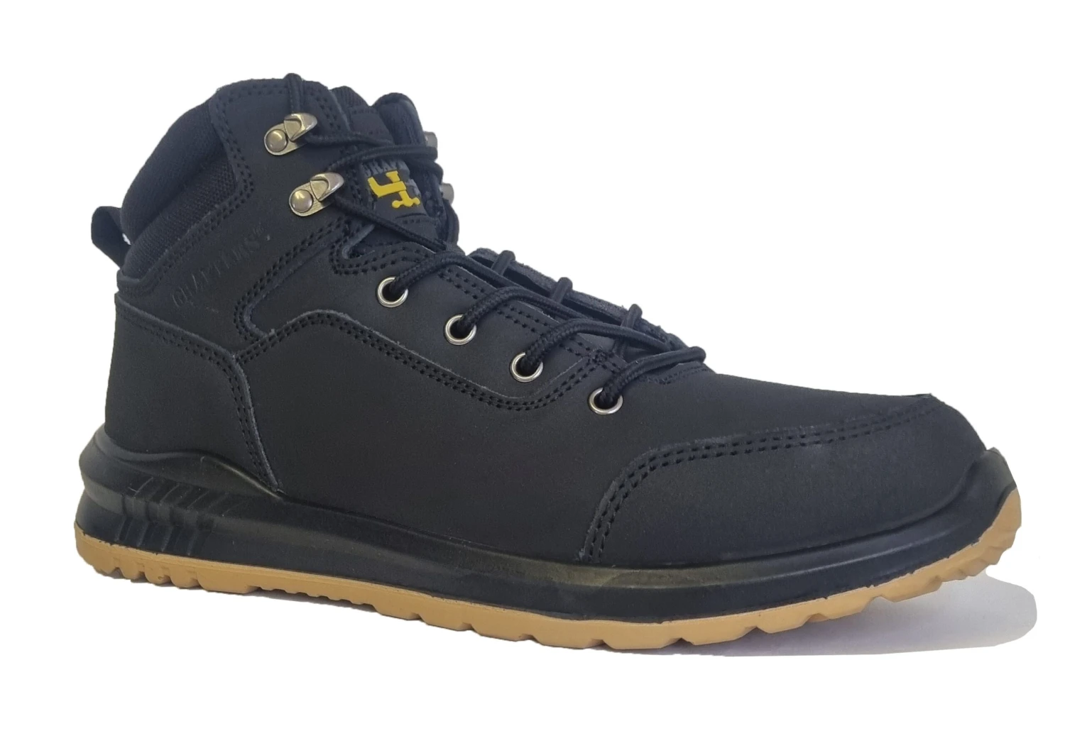 GRAFTERS MENS STEEL TOE COMFORT SAFETY ANKLE TRIANER BOOTS Black