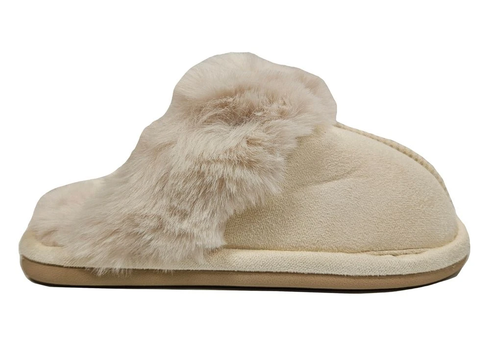 KRUSH LADIES WOOL LINED MUSHROOM FLAT COMFORT SNUGGLY MULE SLIPPERS Cream