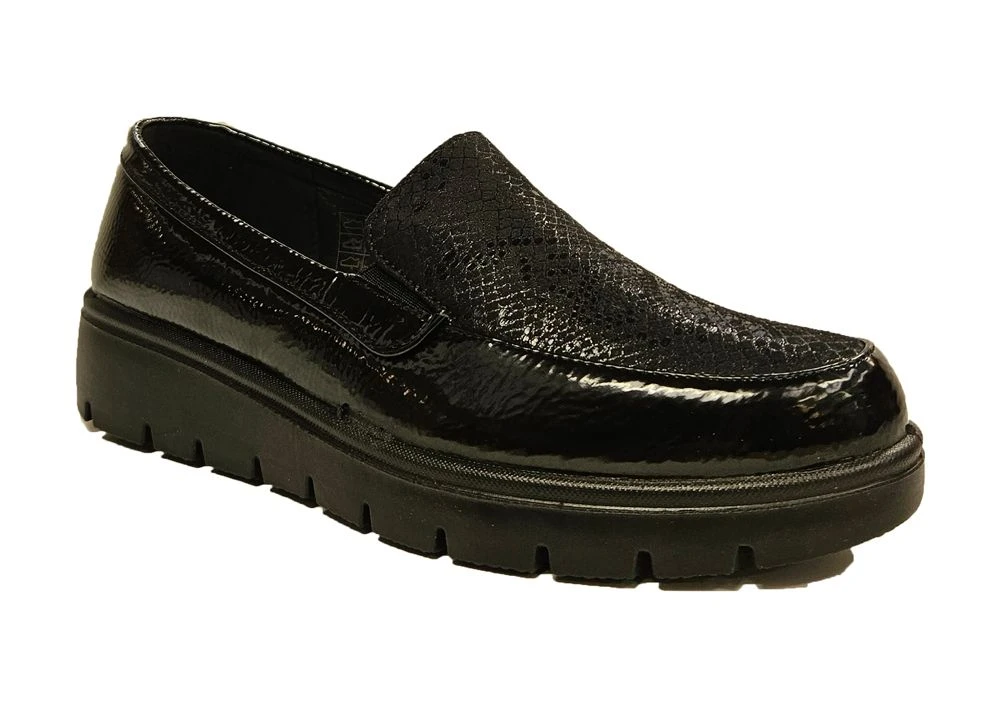 Ladies Low Wedge Loafers Womens Slip On Low Wedge Smart Shoes Size 3 4 5 6 7 8 Black