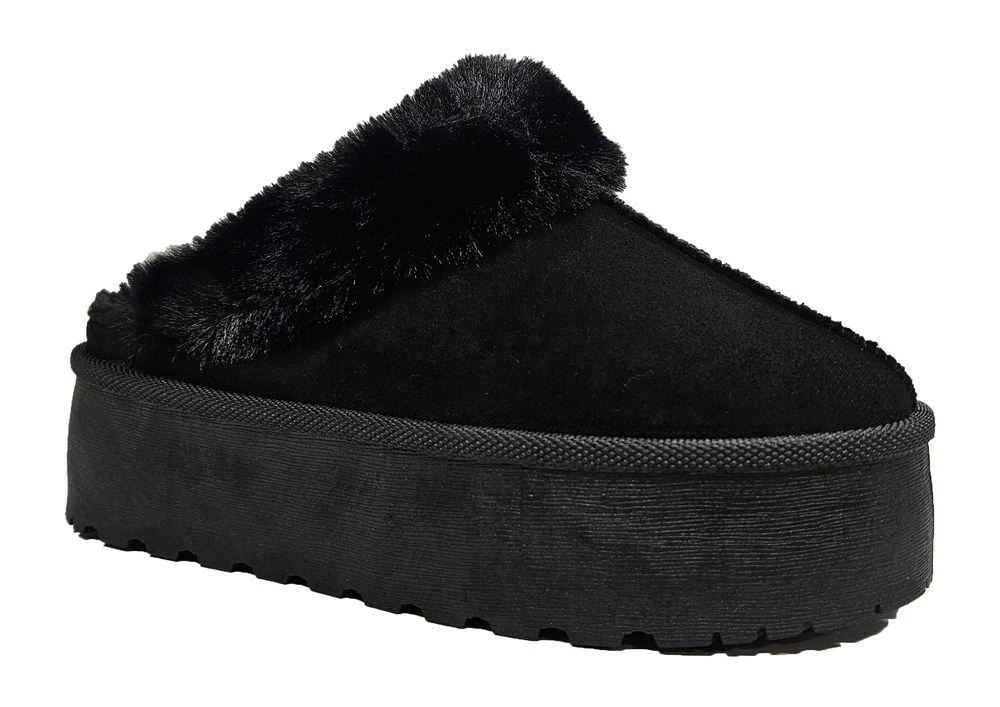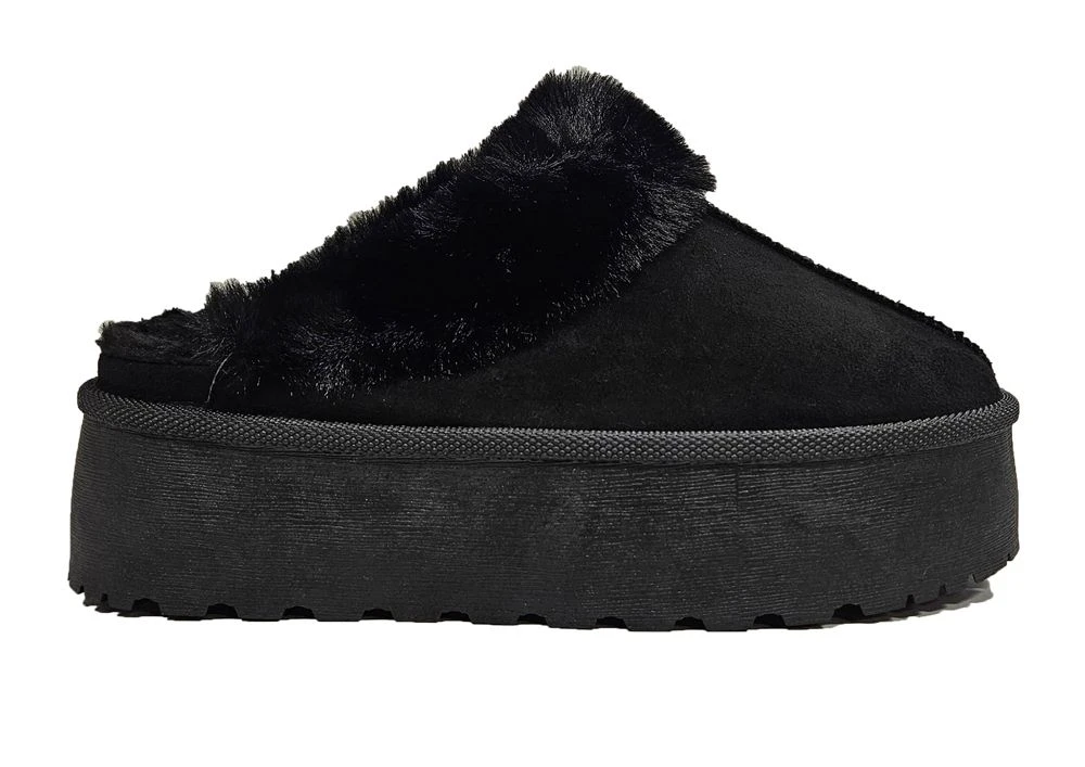 TRUFFLE LADIES BLACK WOOL LINED PLATFORM MULE SLIPPERS Black