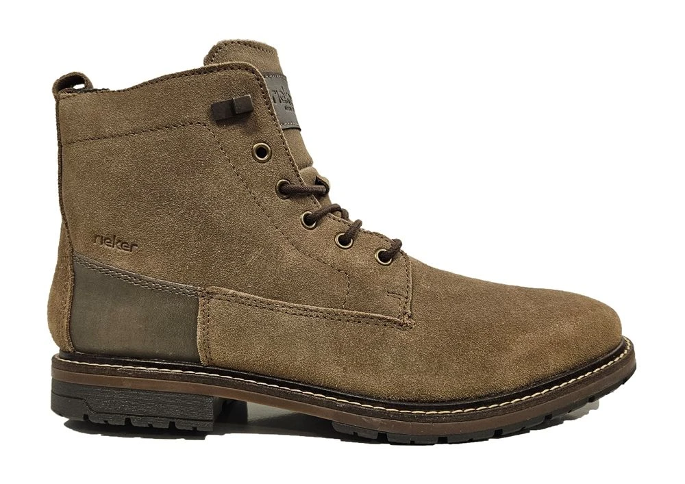 RIEKER MENS BROWN SUEDE LOW HEEL FLEECE LINED ZIP AND LACE UP BOOTS Brown