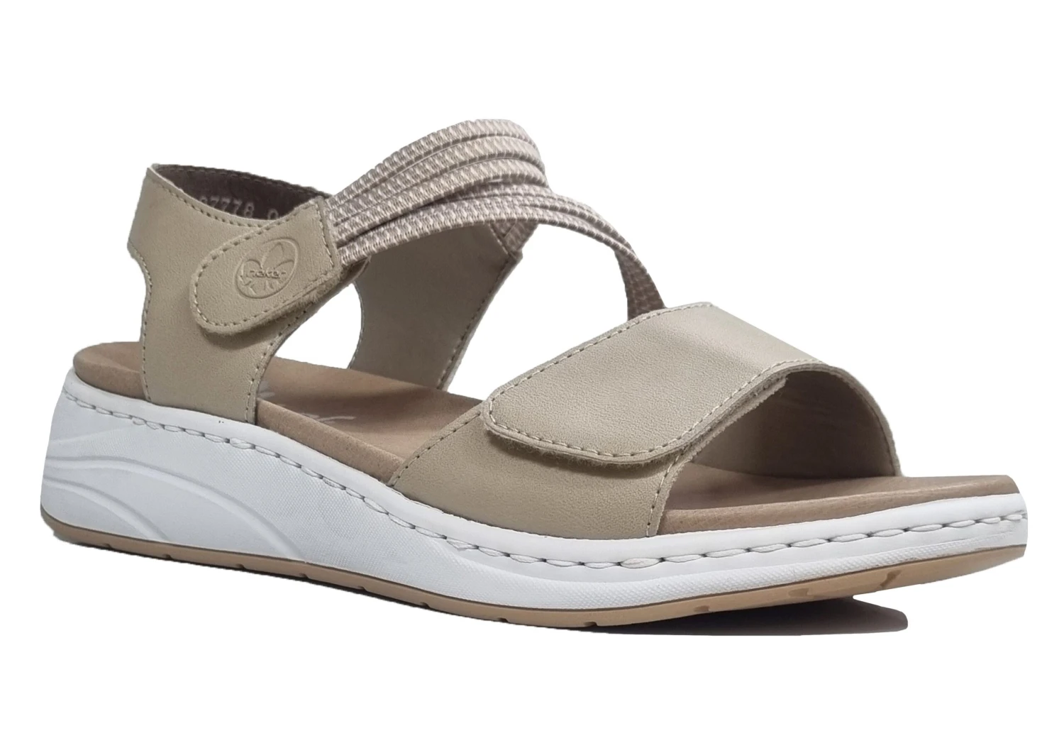 RIEKER LADIES LOW WEDGE BEIGE DOUBLE FASTENING STRAP COMFORT SUMMER SANDALS Beige