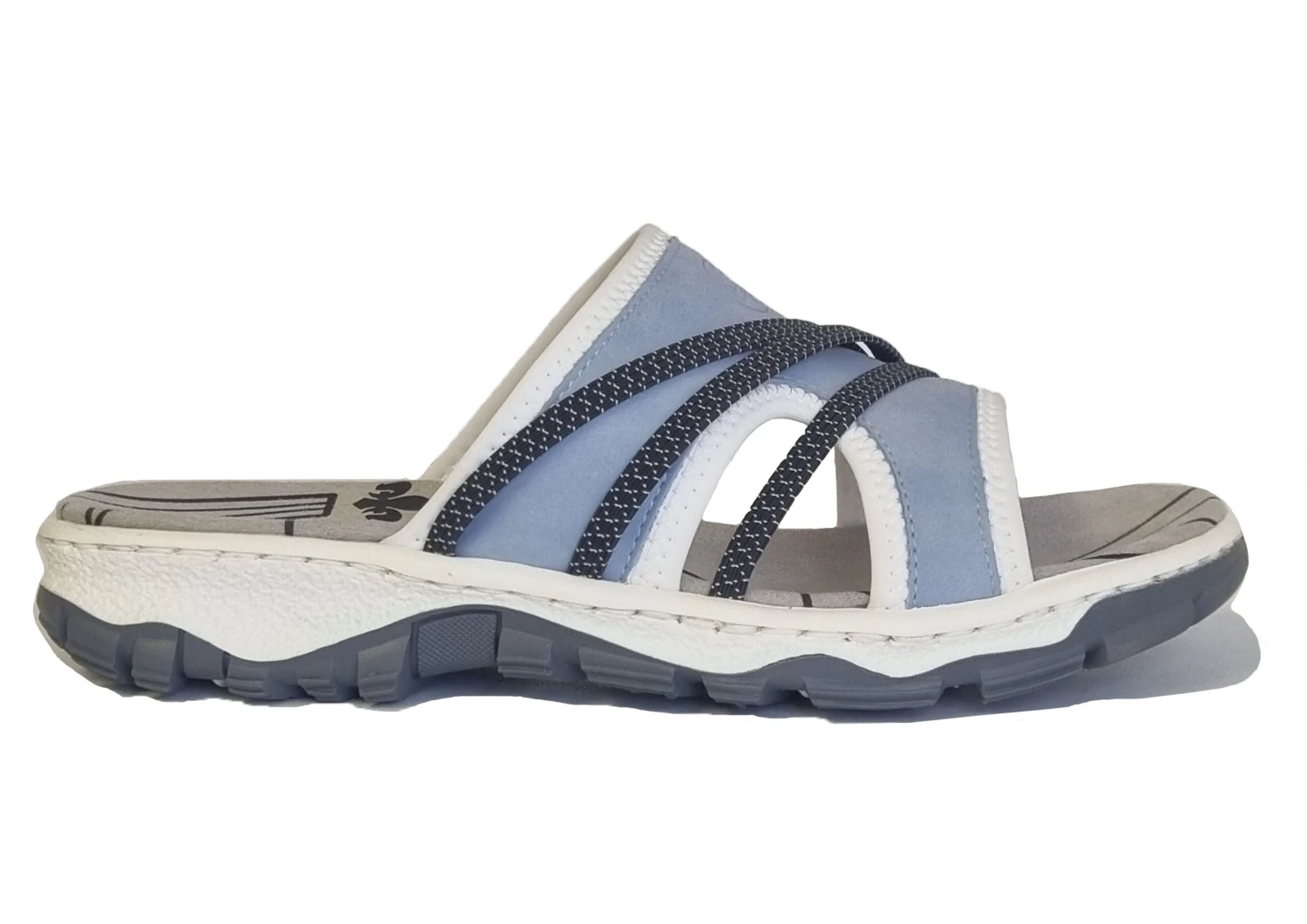 RIEKER LADIES BLUE COMBI COMFORT ANTISRESS SLIP ON SUMMER MULES Blue