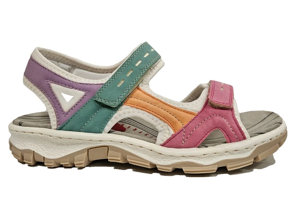 RIEKER LADIES MULTI DOUBLE STRAP COMFORT WALKING SANDALS Multi-Col