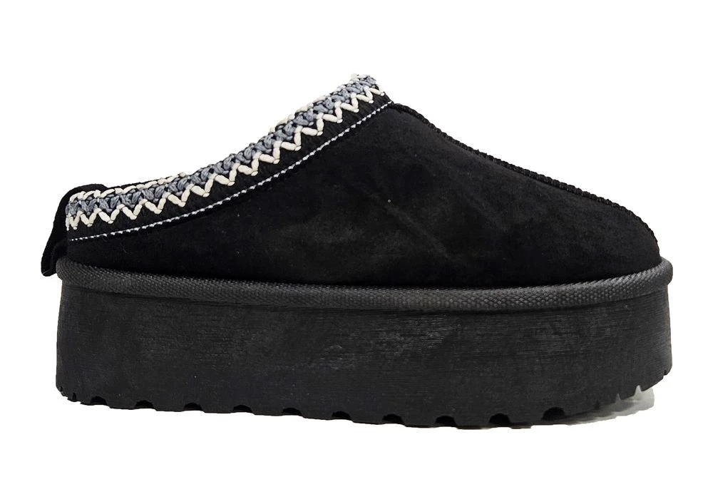 TRUFFLE LADIES VIMTO11 BLACK MICRO WOOL LINED MULE PLATFORM SLIPPERS Black