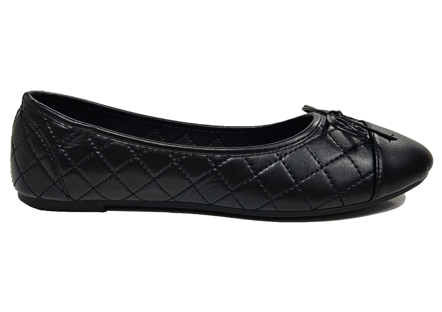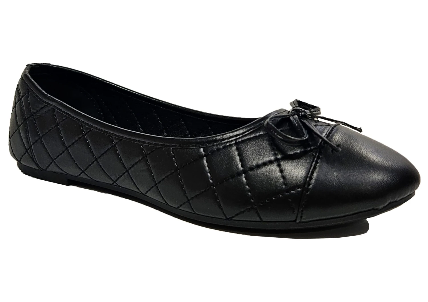 TRUFFLE LADIES FLAT BOW TOE CASUAL FLAT PUMP SHOES Black
