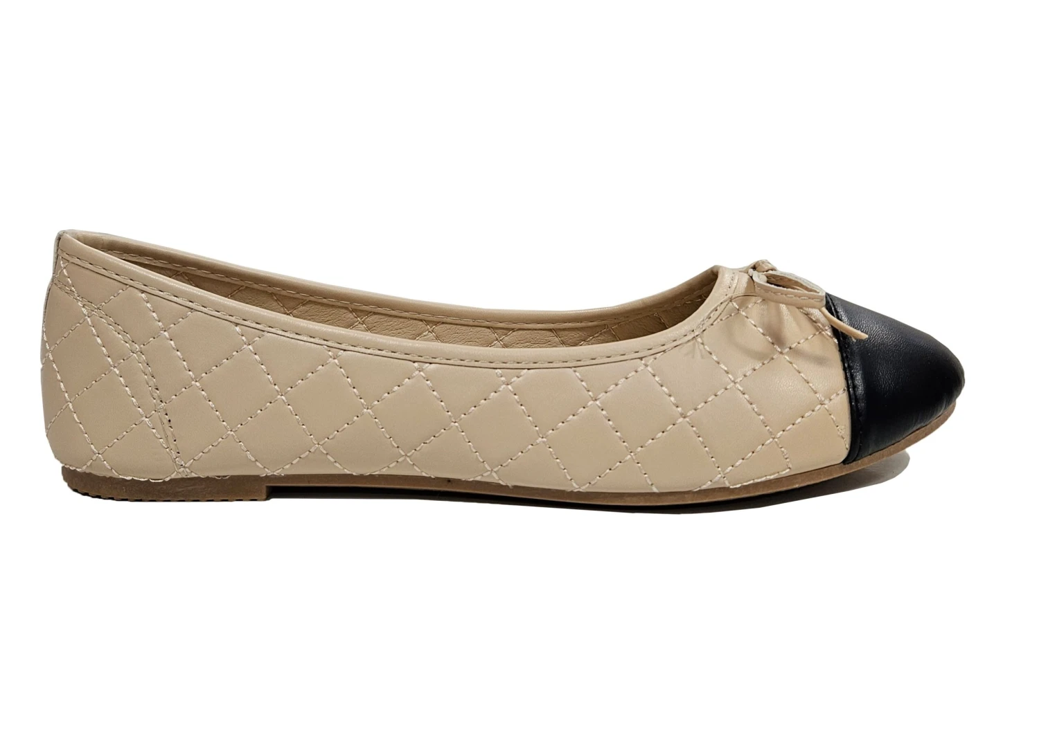 TRUFFLE LADIES FLAT BOW NUDE NATURAL TOE CASUAL FLAT PUMP SHOES Natural