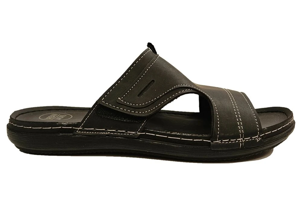 URBAN JACKS MENS BIRKDALE FASTENING STRAP BLACK SUMMER SLIP ON MULES Black