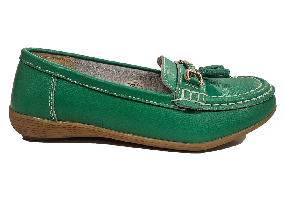 Womens Leather Wide Fit Comfort Tassel Loafers Flat Summer Shoes Size 3 4 5 6 7 8 Green