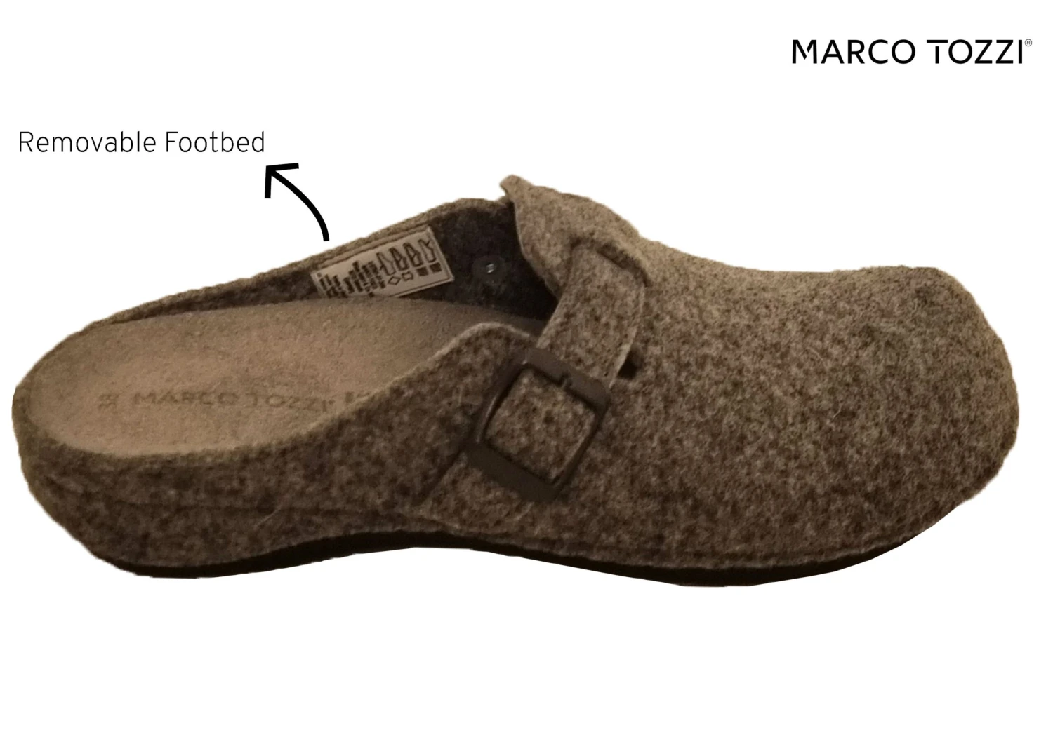Womens Marco Tozzi Grey Felt Wool Comfort Slip On Mule Slippers