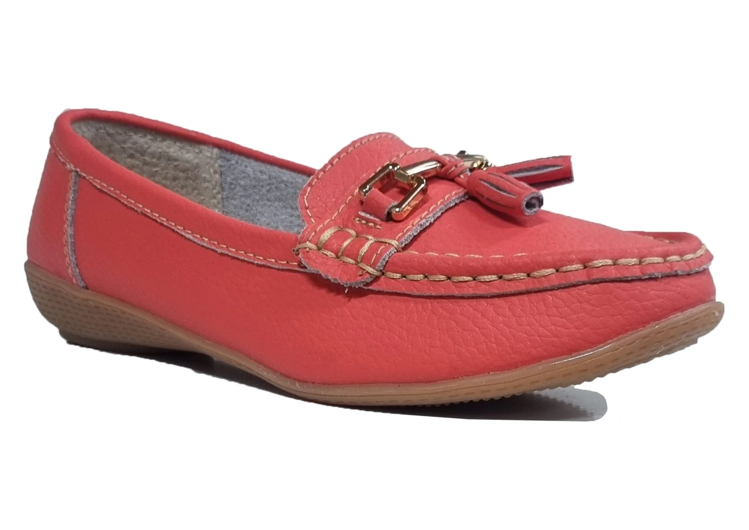 Womens Pink Leather Loafers Wide Fit Comfortable Shoes Size 3 4 5 6 7 8 Coral