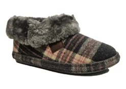 Grey Pink Tartan Fluffy Slippers Shoes Womens Cosy Warm Lined Slipper Booties Size 3 4 5 6 7 8 Grey