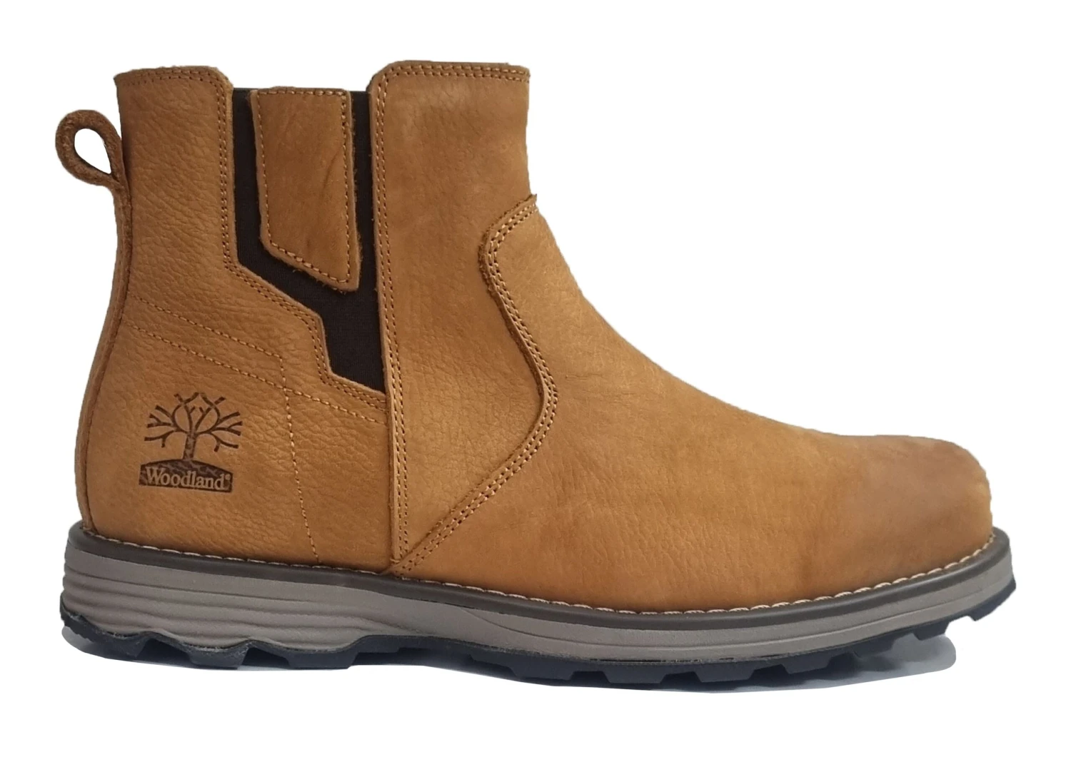 WOODLAND MENS TAN MILLED NUBUCK COMFORT STRETCH ANKLE BOOTS Tan